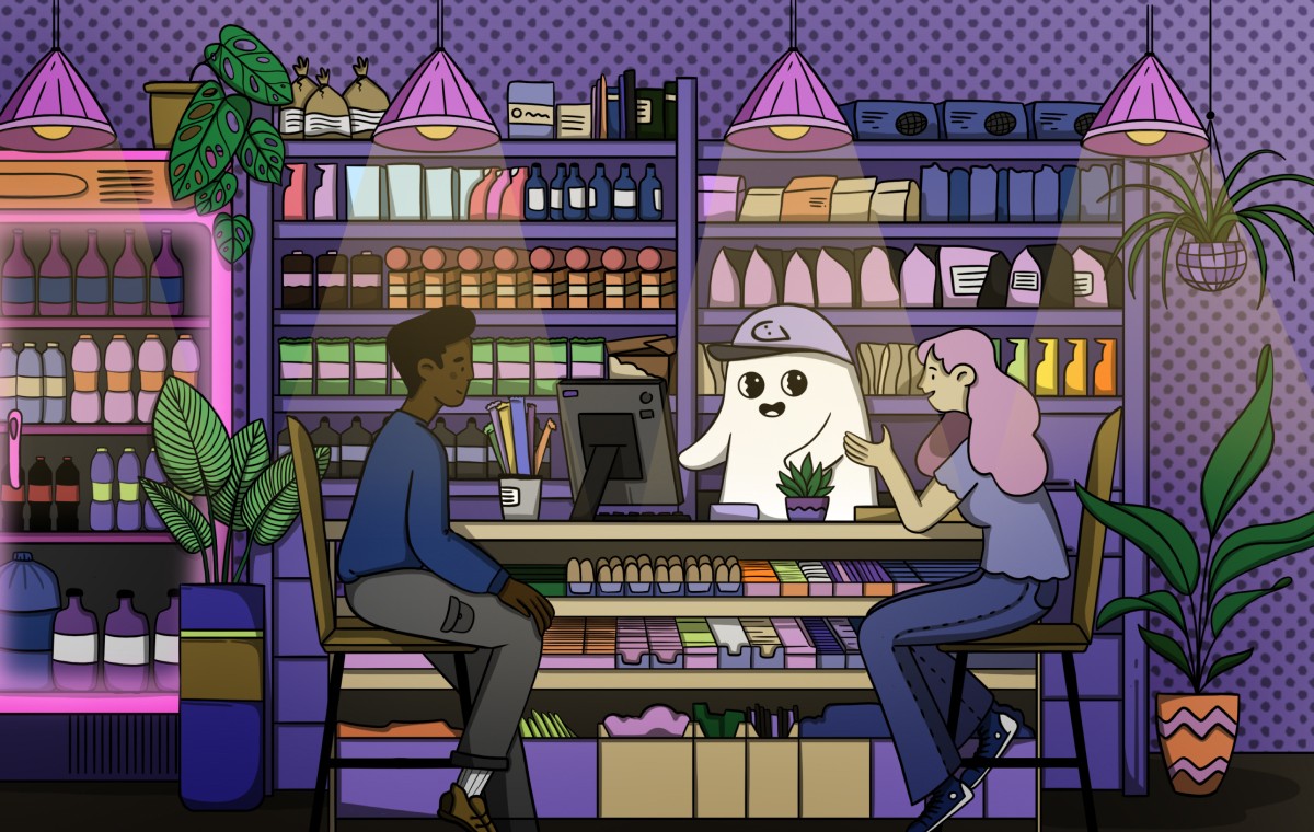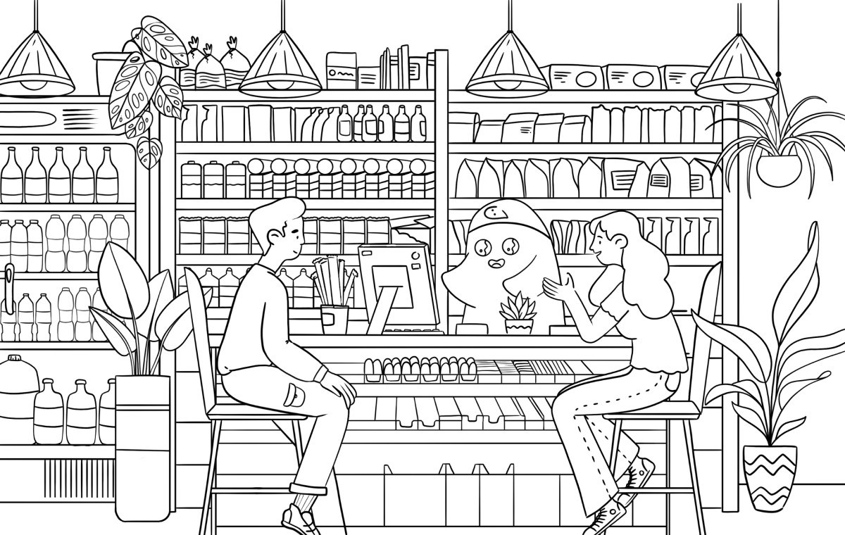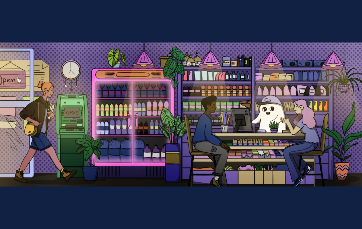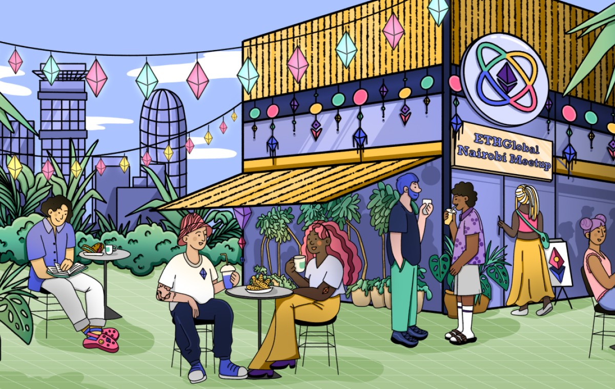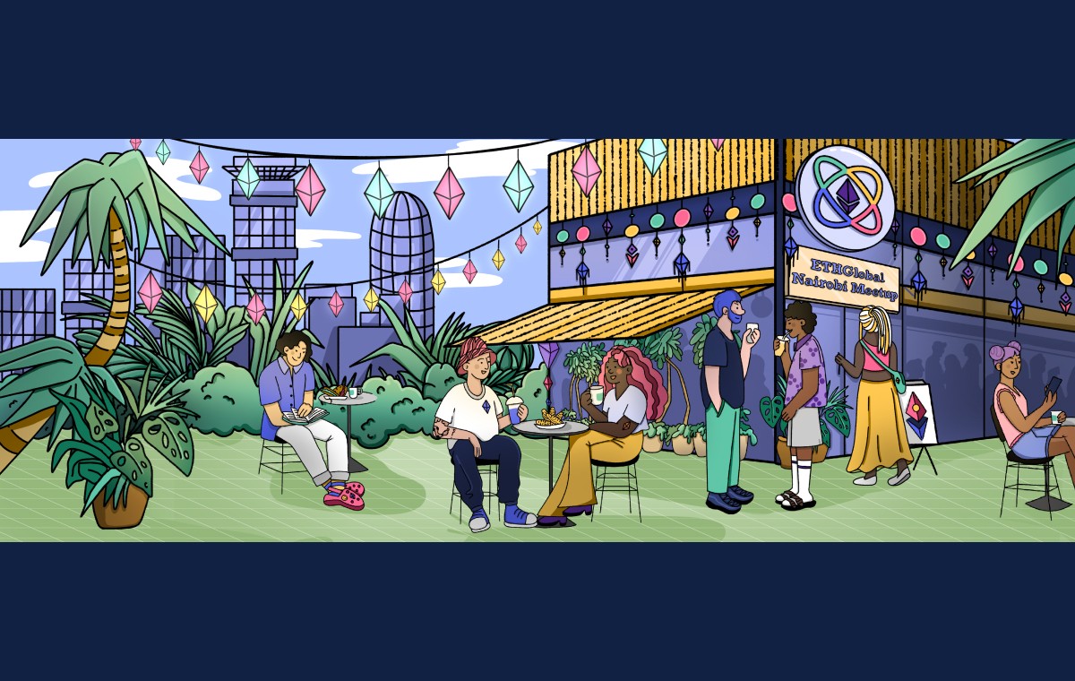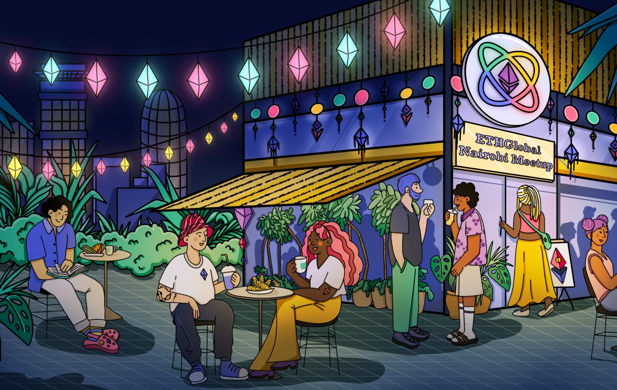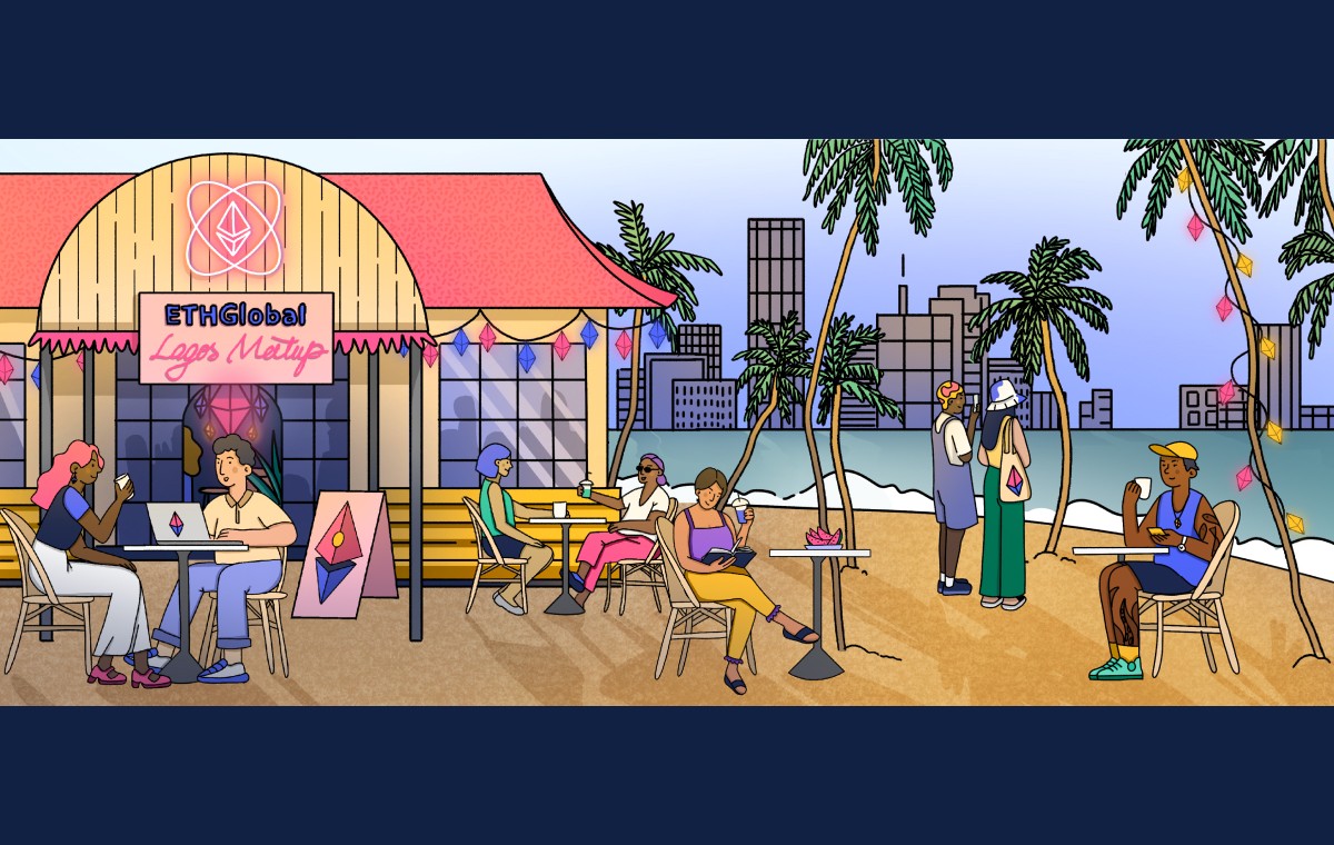 For the New York event, I illustrated a scene featuring people networking outside of a classic Brooklyn-style cafe. The environment captures the local culture, with Ethereum logos hidden throughout the scene as an engaging nod to the event's theme.