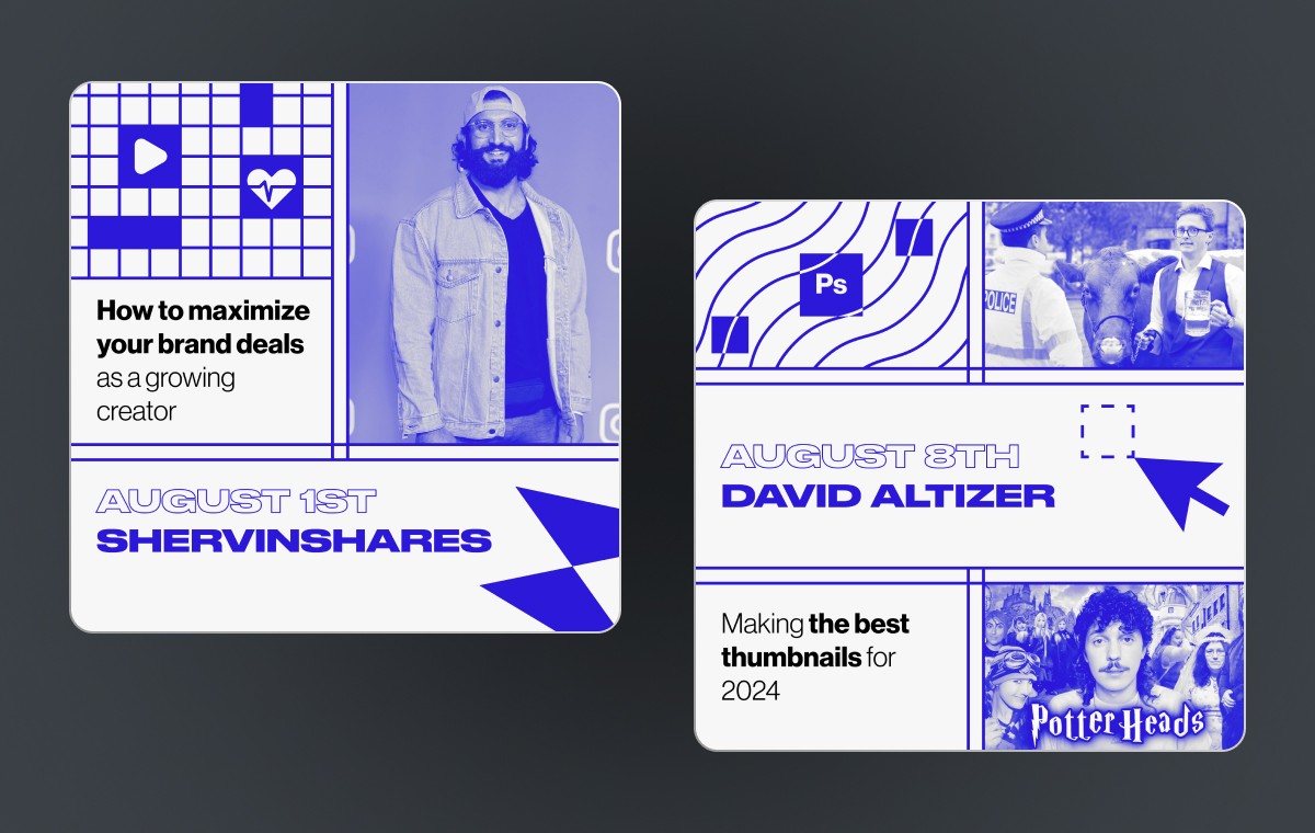 For this project, I designed a carousel post for Instagram to promote the launch of a new Discord community for creators. The goal is to highlight weekly live events featuring guest creators who dive into all aspects of the content business.