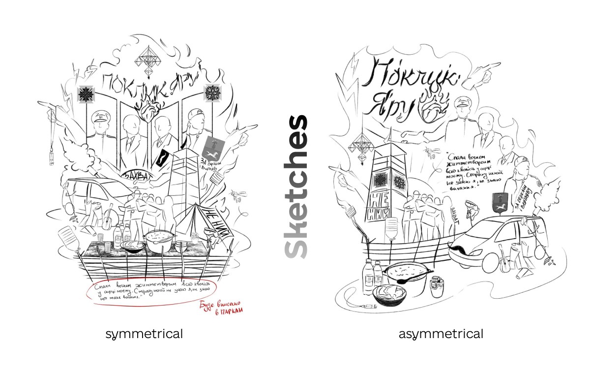 This was a conceptually rich project, involving more than 30 symbols and attributes. These ranged from influential historical figures such as Yevhen Konovalets and Yurii Horlis-Horskyi, to emblems and everyday cultural objects like the kolotylo and ginger kvass. Unifying these diverse references into a single cohesive illustration was both a creative challenge and a highlight of the project.