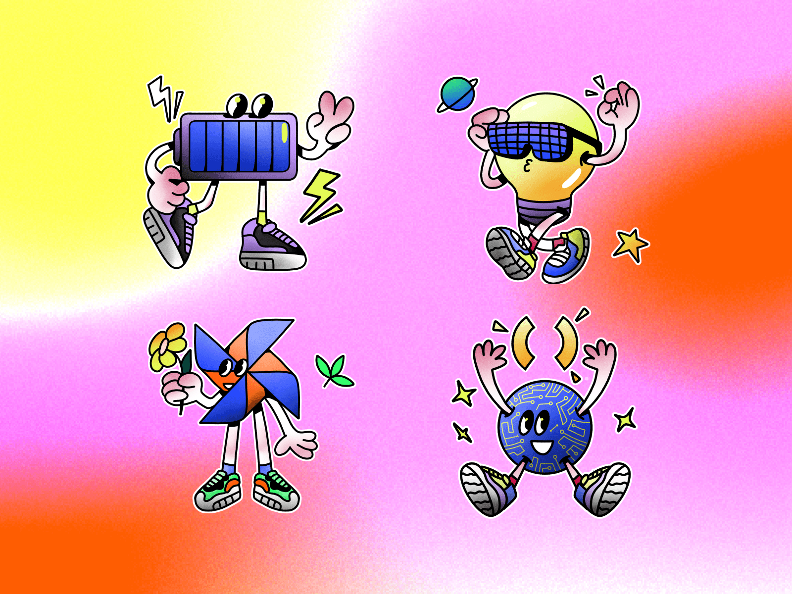 For this project, I designed four unique characters to represent different user profiles in an EV Charging Recap.