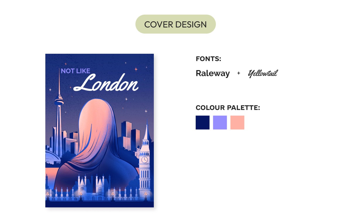 For this book cover design, I captured the emotional journey of a young girl transitioning from her past life in London to a new beginning in Toronto.